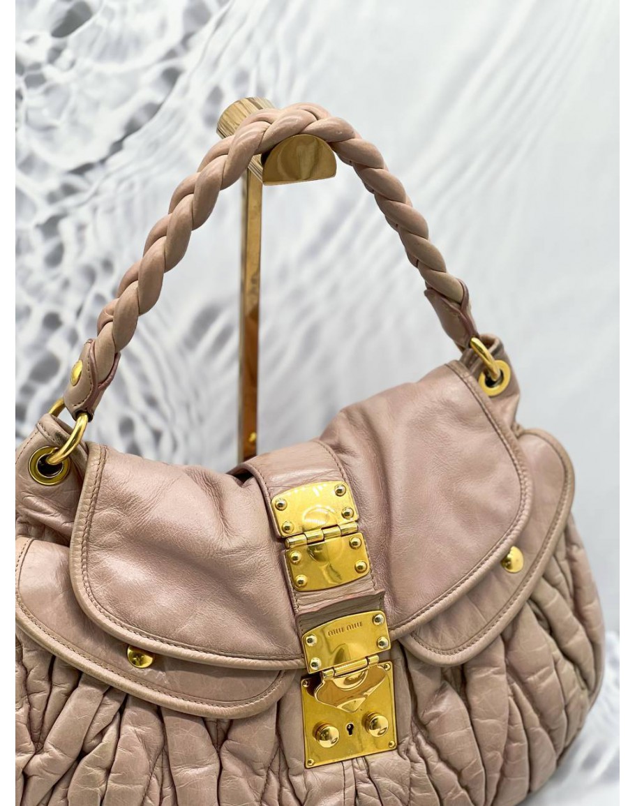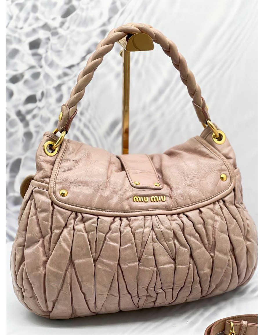 MIU MIU HOBO SHOULDER BAG IN PINK MATELASSE LEATHER