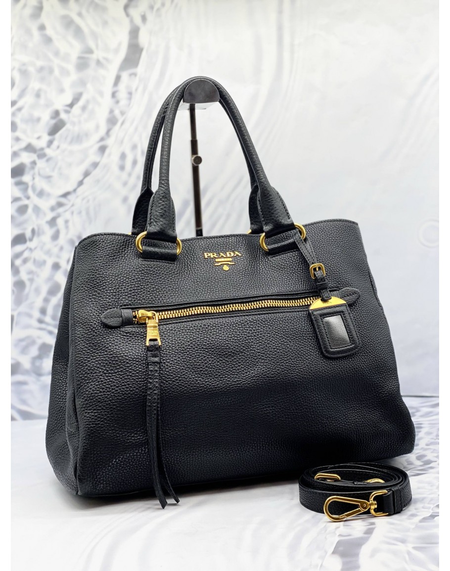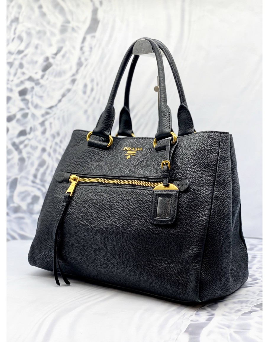 Tags:  PRADA FRONT POCKET TOTE BAG IN BLACK VITELLO DAINO LEATHER