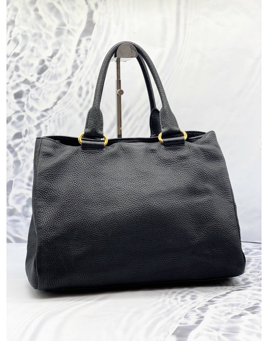 PRADA FRONT POCKET TOTE BAG IN BLACK VITELLO DAINO LEATHER