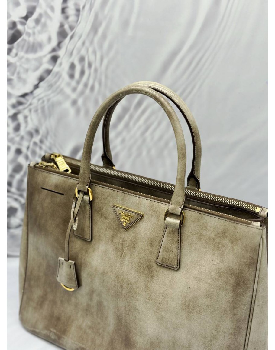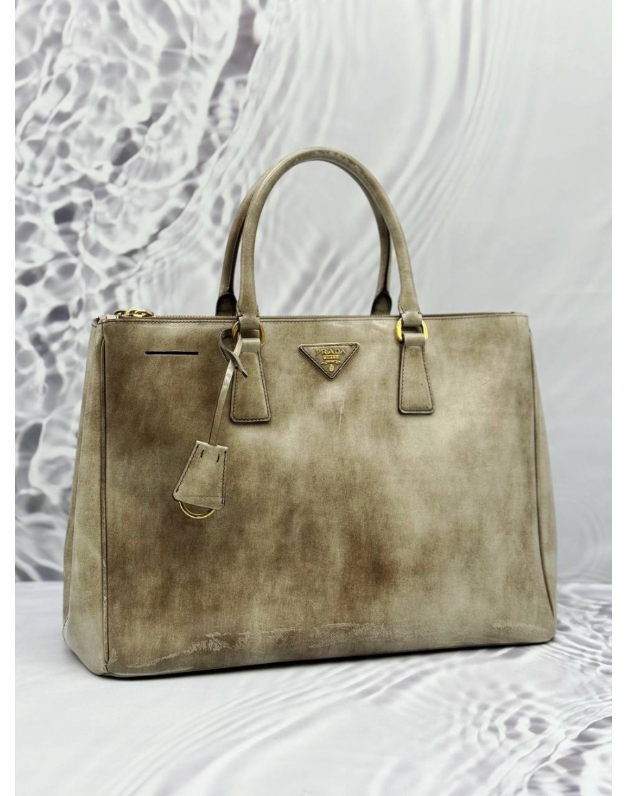 Tags: PRADA GALLERIA LARGE DOUBLE ZIP TOTE BAG IN BEIGE PATENT LEATHER