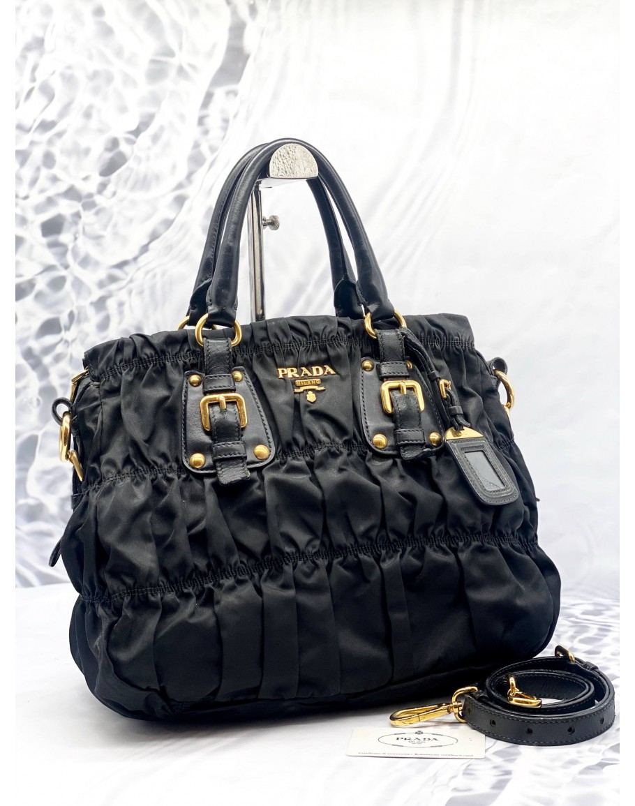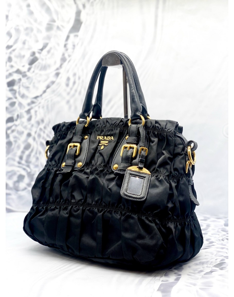 Tags: PRADA GAUFRE TOTE SHOULDER BAG IN BLACK NYLON WITH CALFSKIN LEATHER