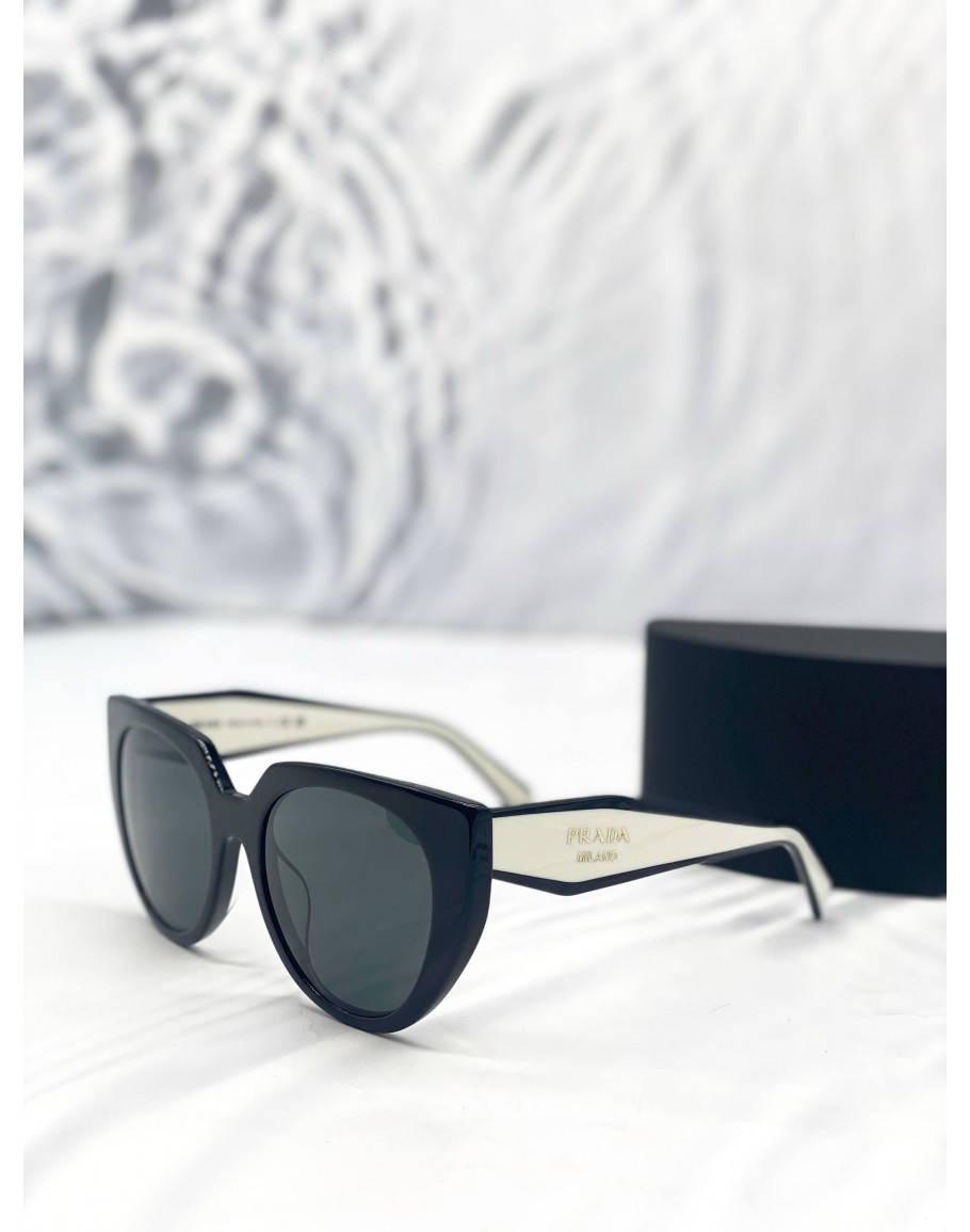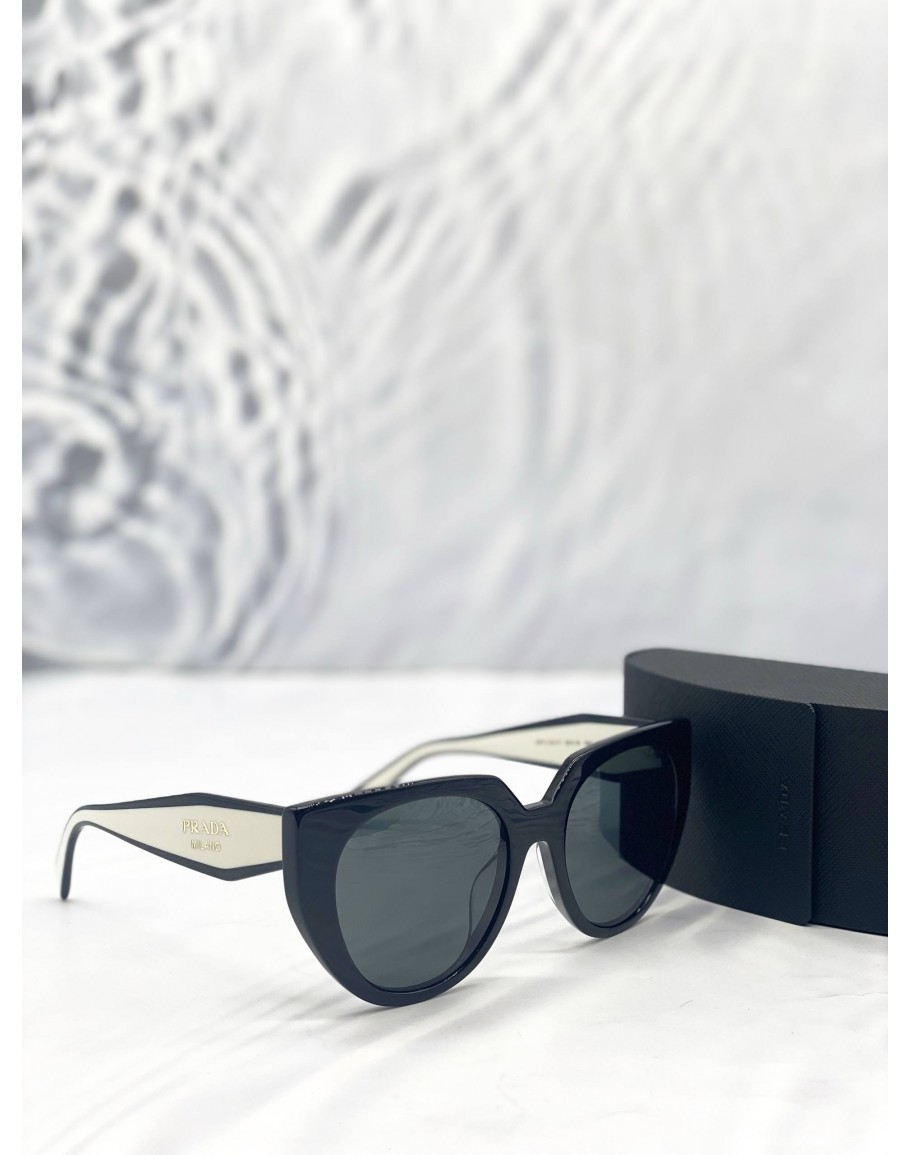 Tags: PRADA PR 14WS CAT-EYE SUNGLASSES IN BLACK AND TALC WITH DARK GREY LENSES