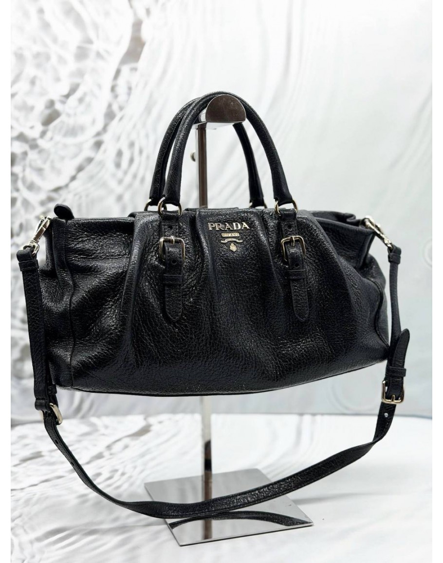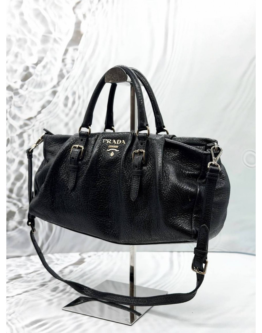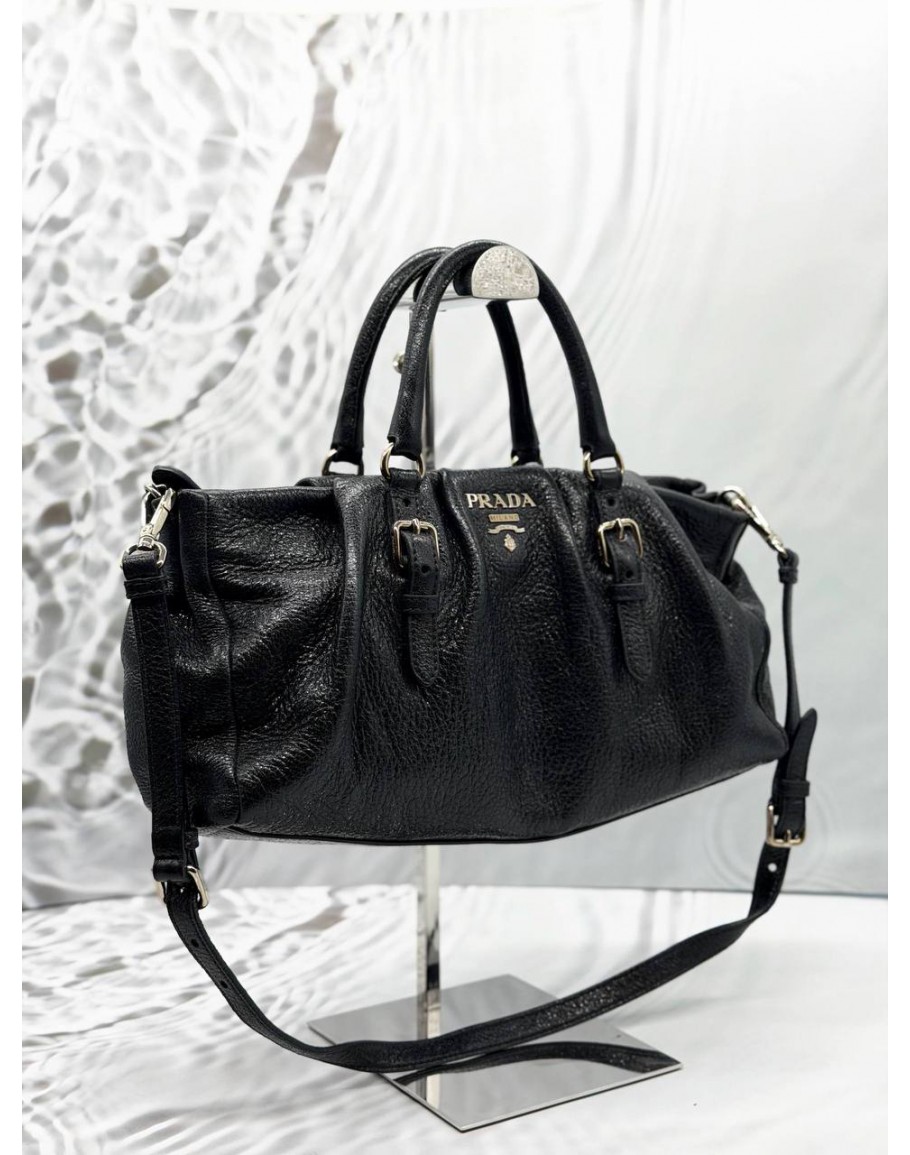 PRADA SHOULDER BAG IN BLACK SHINE LEATHER