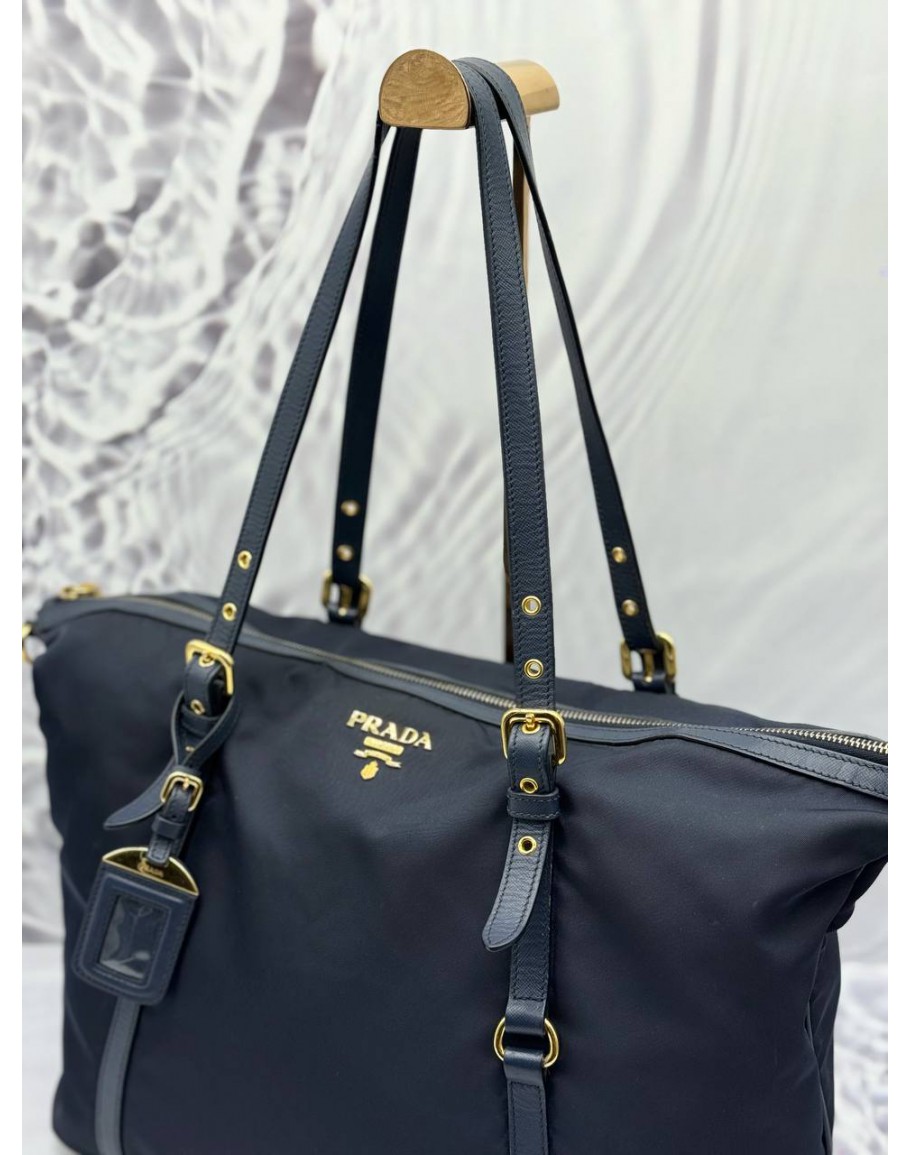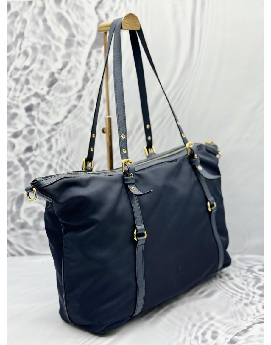 Tags: PRADA TOTE SHOULDER BAG IN DARK BLUE NYLON WITH LEATHER