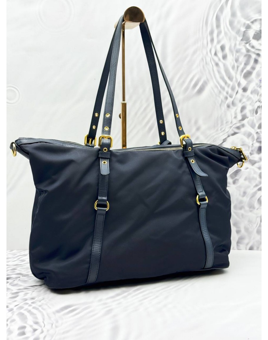 Product Code: PRADA TOTE SHOULDER BAG IN NAVY BLUE NYLON WITH CALFSKIN LEATHER
