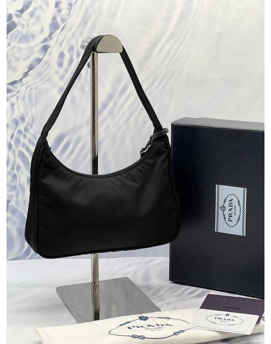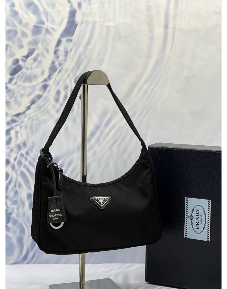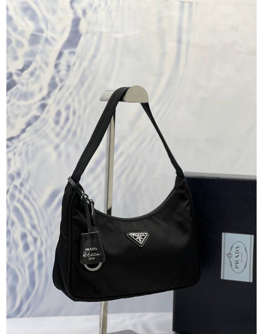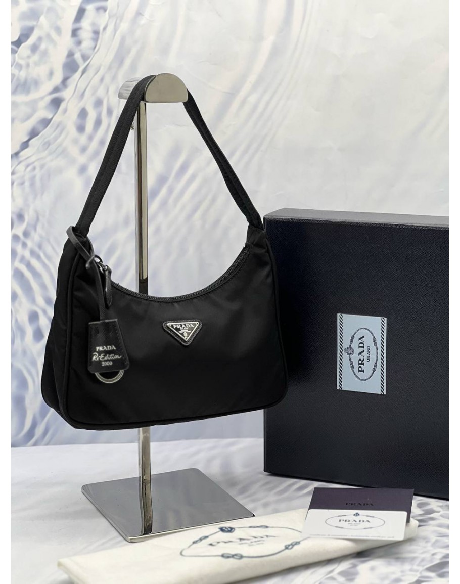 Tags: (LIKE NEW) PRADA RE-EDITION SHOULDER BAG IN BLACK TESSUTO WITH SAFFIANO LEATHER -FULL SET-