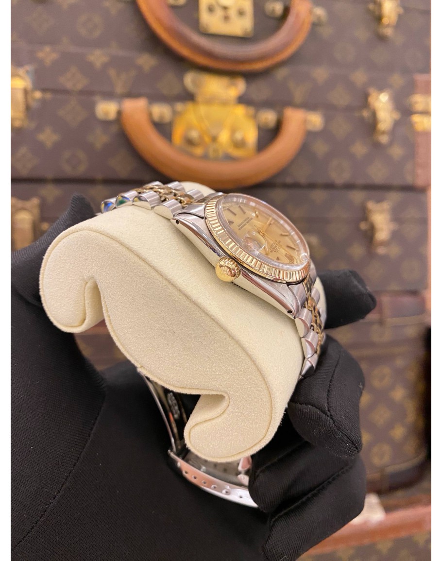 ROLEX DATEJUST 31 JUBILEE HALF 18K 750 YELLOW GOLD REF 6827 CHAMPAGNE DIAL 31MM AUTOMATIC WATCH