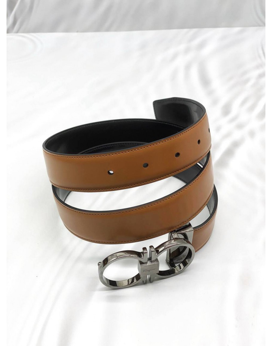Tags: SALVATORE FERRAGAMO GANCINI REVERSIBLE BELT SIZE 95CM IN BROWN WITH BLACK LEATHER -FULL SET-