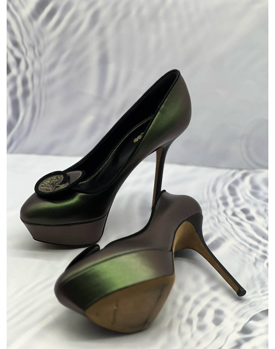 Tags: SERGIO ROSSI PLATFORM PUMPS SIZE 38 IN METALLIC DARK GREEN CALFSKIN LEATHER