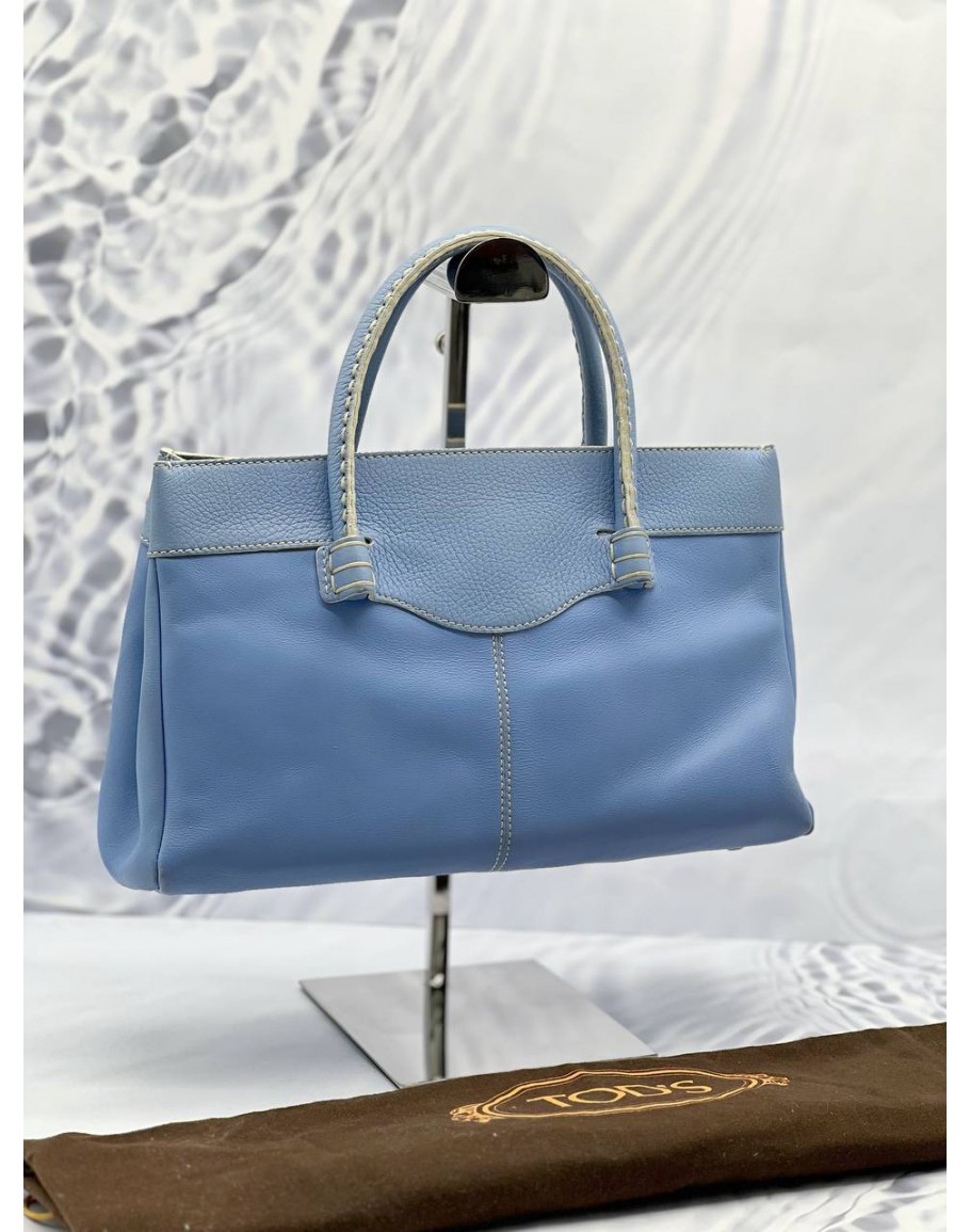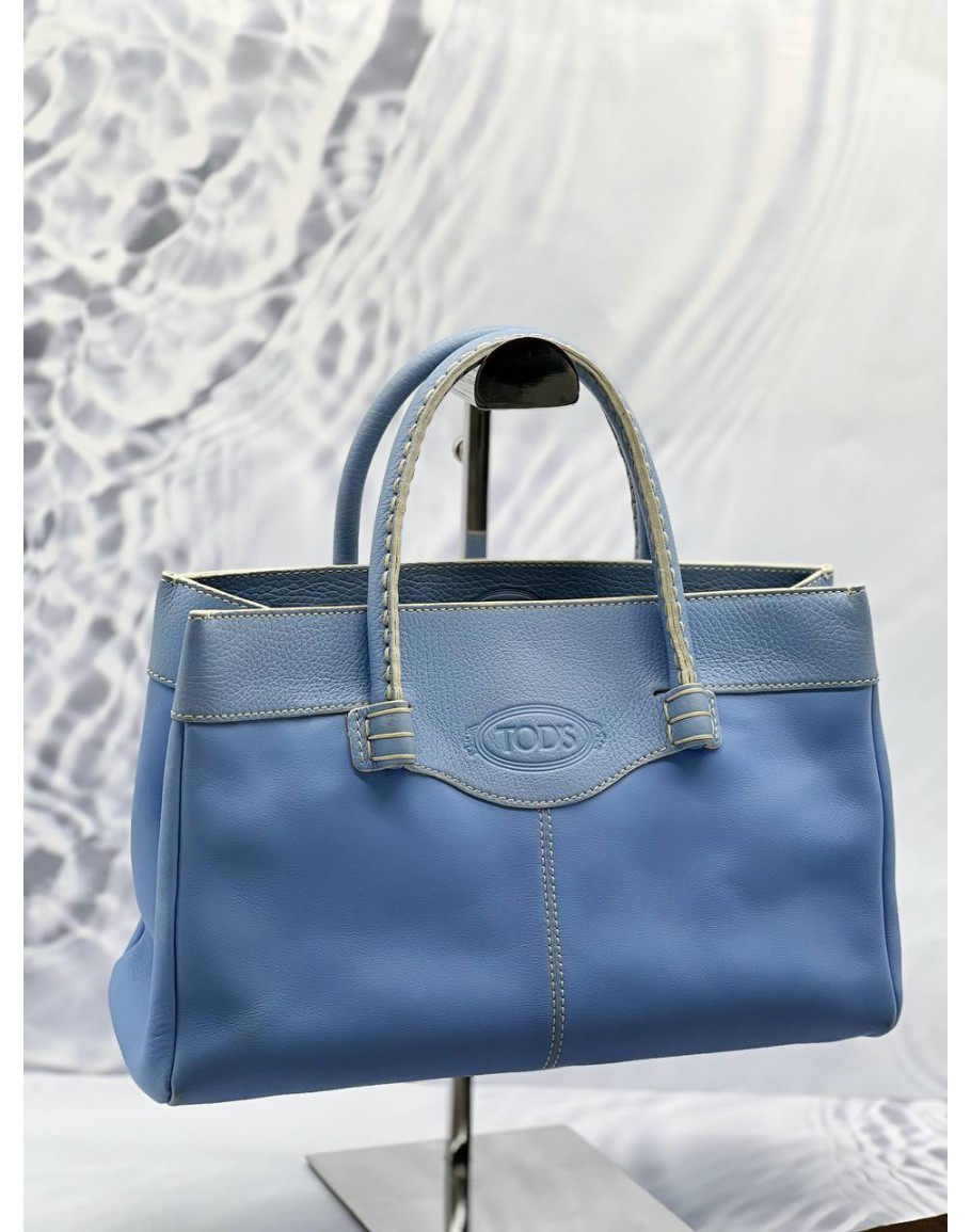TOD’S HOLLY TOP HANDLE BAG IN LIGHT BLUE LEATHER