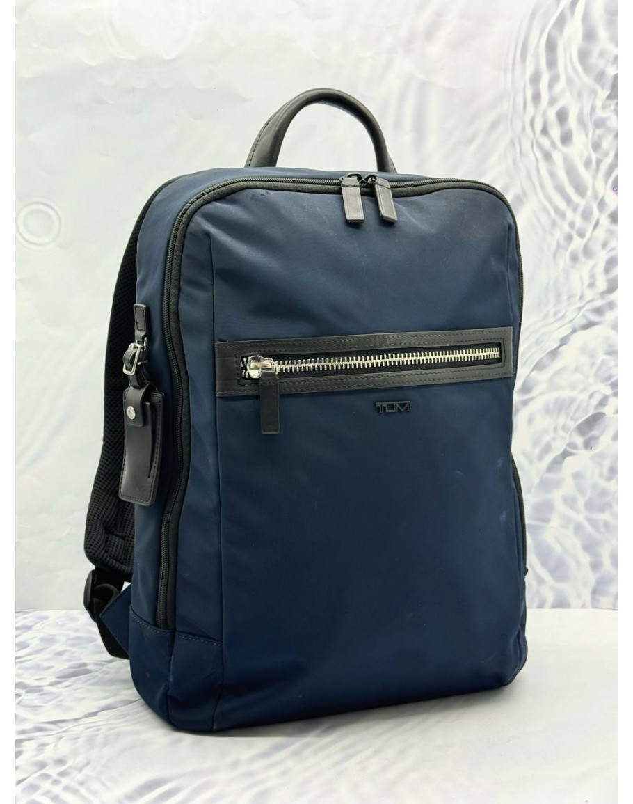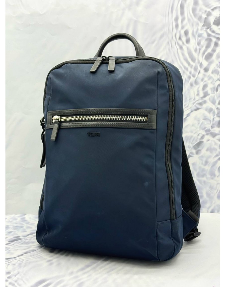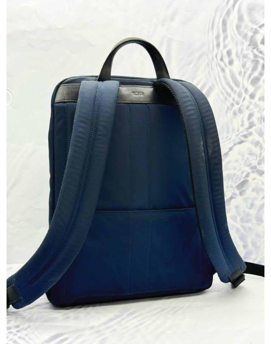 Tags: TUMI RIVER SLIM BACKPACK IN NAVY BLUE NYLON WITH BLACK CALFSKIN LEATHER