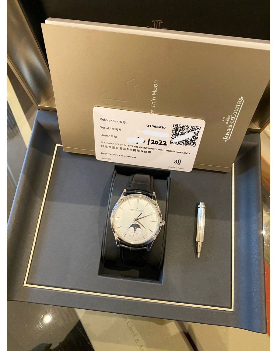 (UNUSED) 2022 JAEGER-LECOULTRE MASTER ULTRA THIN MOON FACE REF Q1368430 SILVER DIAL 39MM AUTOMATIC WATCH -FULL SET-