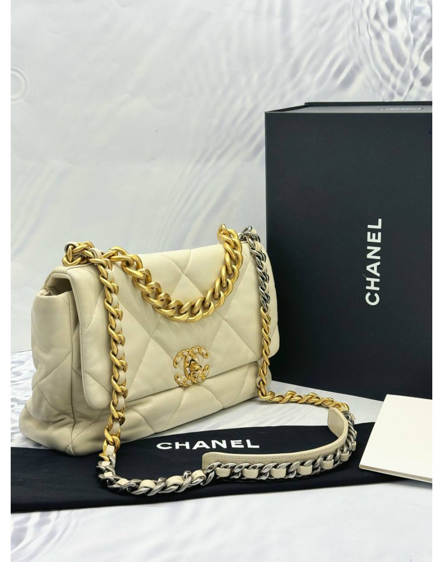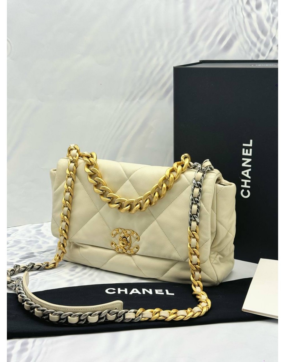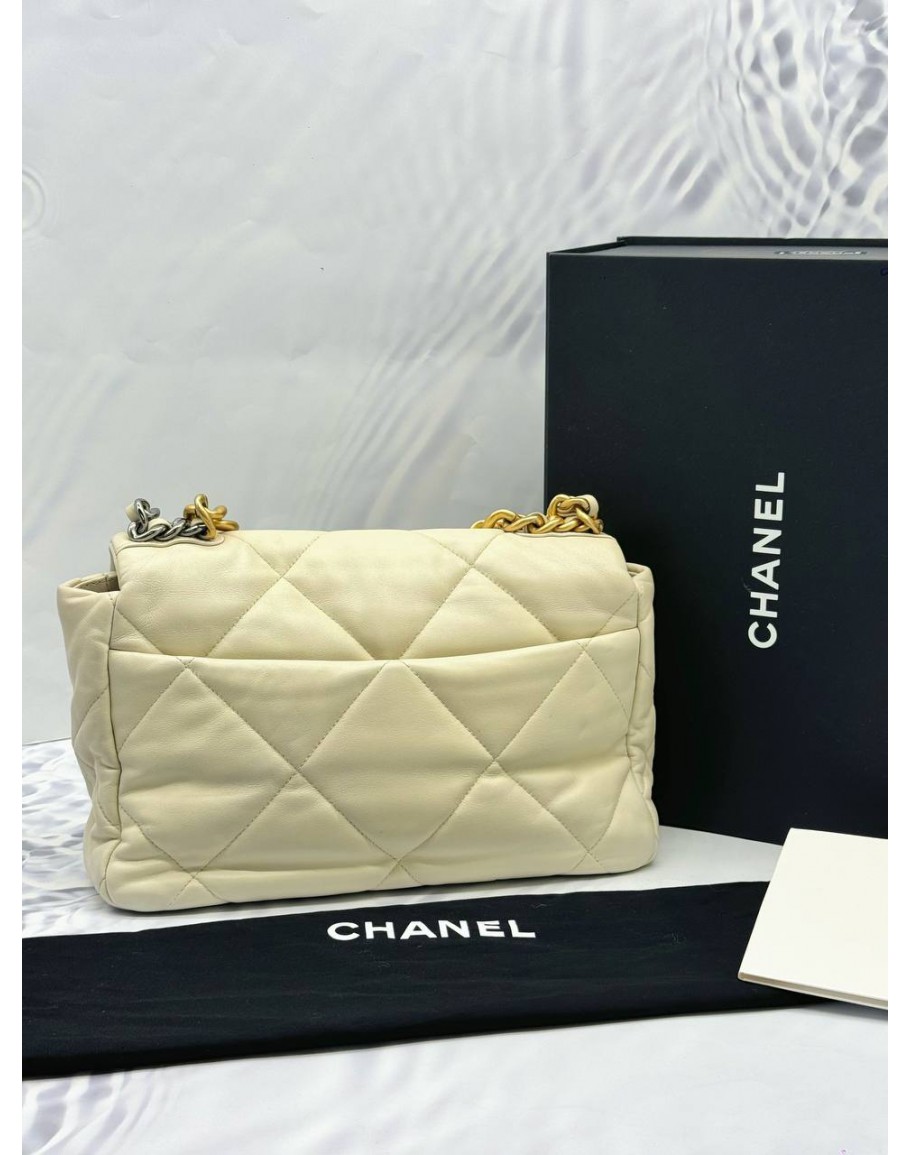 Product Code: CHANEL 19 FLAP SHOULDER BAG IN IVORY LAMBSKIN LEATHER