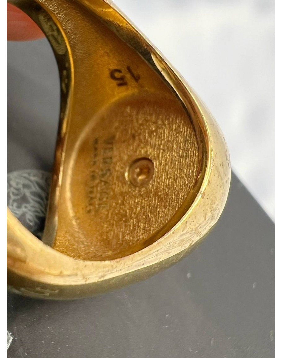Tags: VERSACE MEDUSA RING SIZE 15 IN GOLD METAL WITH BLACK ENAMEL